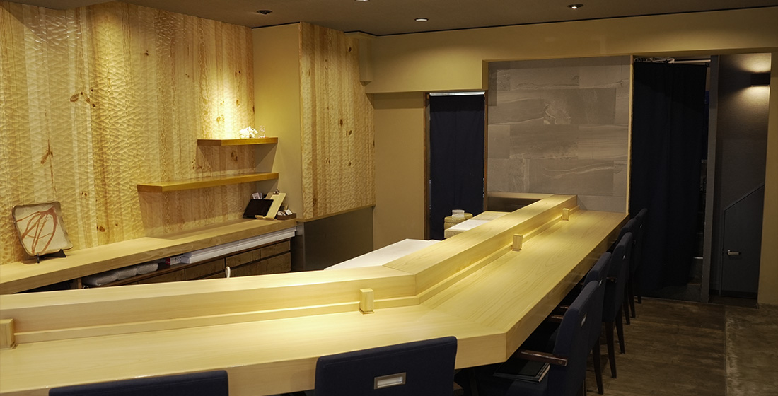当店ではお客様とのコミュニケーションをたいせつにしているため、全席カウンターとしております。目の前で職人が魅せる技術や手捌き、こだわりを直接感じていただければ幸いです。